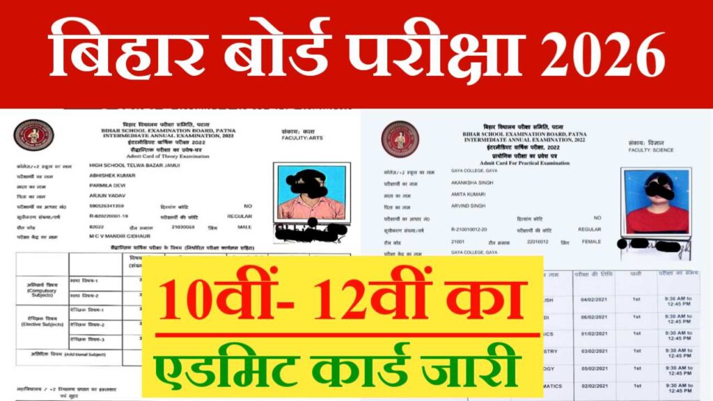Bihar Board 10th 12th Admit Card Download 2026: जारी हुआ, मैट्रीक-इंटर परीक्षा का एडमिट कार्ड, यहाँ से डाउनलोड करें