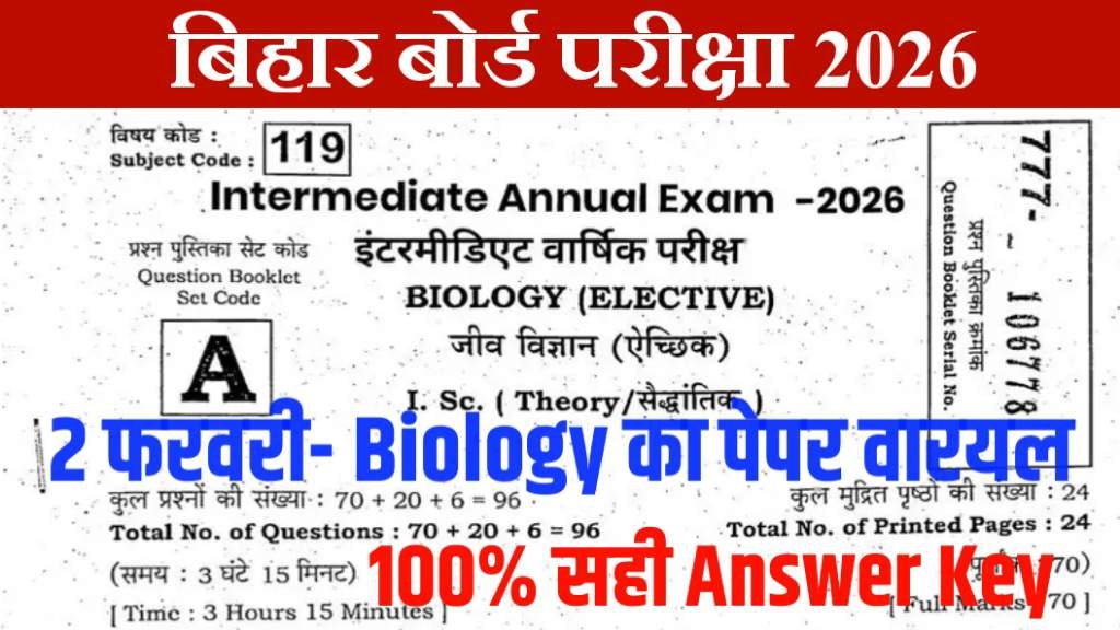 बिहार बोर्ड 12वीं बायोलॉजी परीक्षा आंसर की 2026, जारी होने की तारीख:- 02 जनवरी 2026