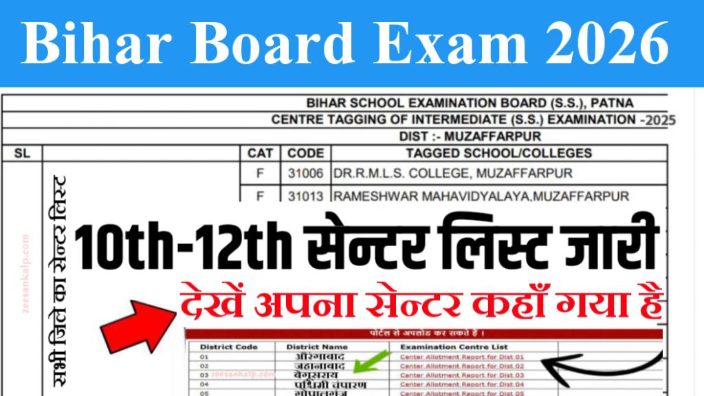 Bihar Board Matric-Inter Center List Jari 2026: बिहार बोर्ड 10वीं/12वीं परीक्षा का सेंटर लिस्ट जारी- यहाँ से डाउनलोड करें